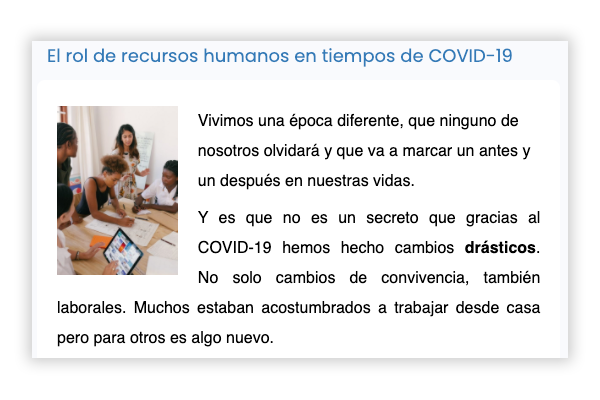 Comparta información de interés a todos los colaboradores. Las publicaciones pueden tener cualquier tamaño, y puedes incluir imágenes para ilustrar el texto.
