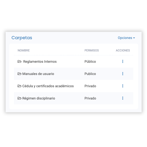 Puedes crear carpetas públicas para información que debe compartirse, y carpetas privadas para información de cada colaborador.